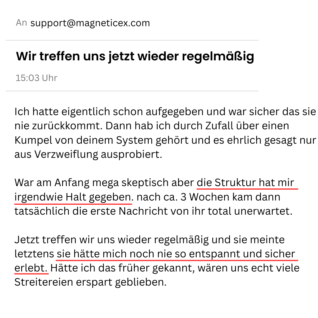 Genau das passiert gerade bei tausenden Männern, die mein Magnetic Ex System nutzen.