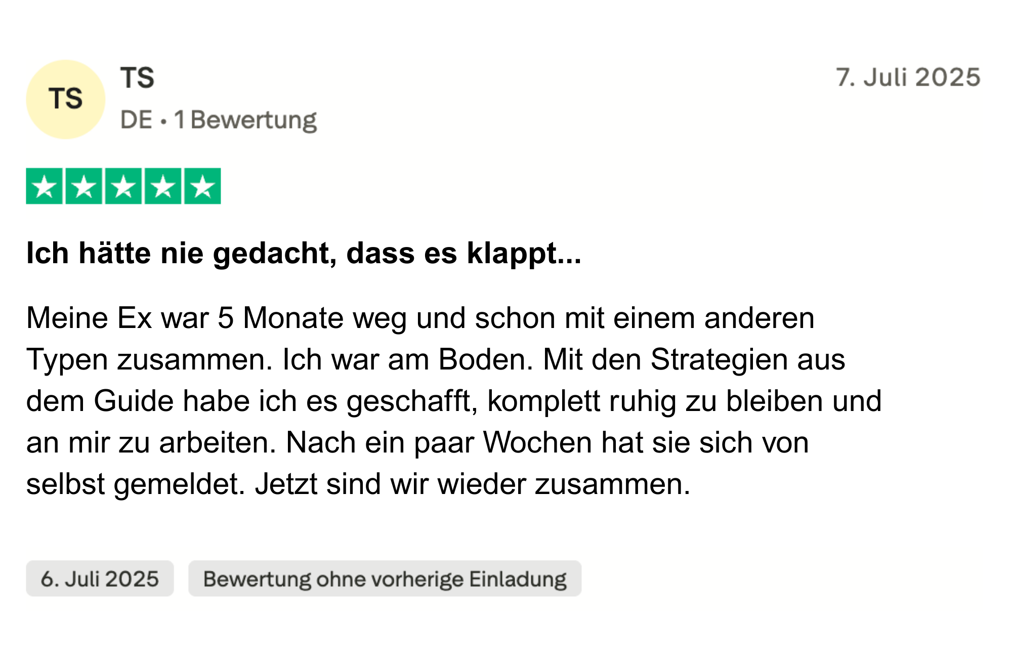Ich weiß, dass die Strategien in diesem Programm funktionieren, weil sie bereits tausenden Männern geholfen haben, ihre Ex zurückzugewinnen und eine neue, leidenschaftliche Dynamik aufzubauen.